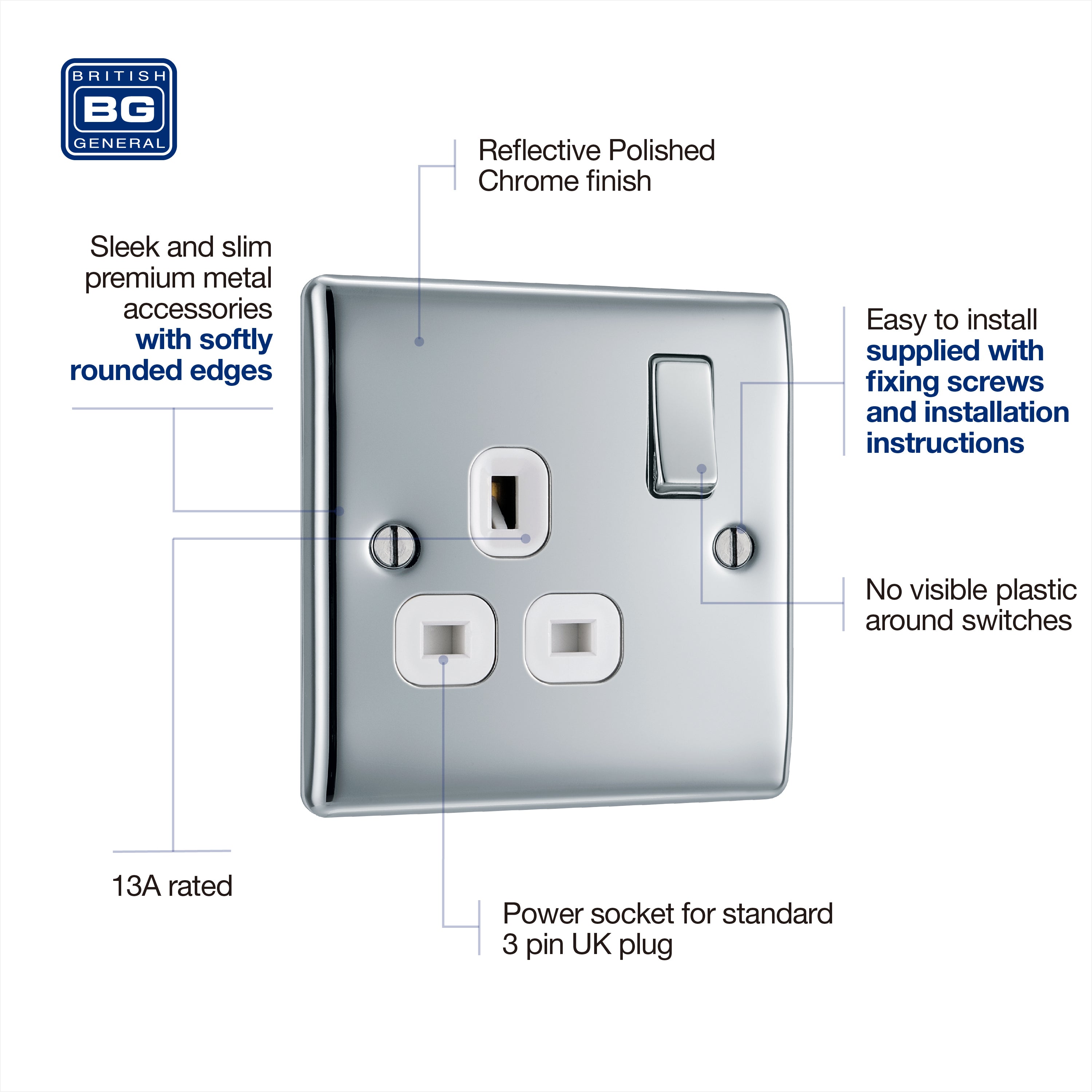 BG Nexus Metal Polished Chrome 13A Single Socket NPC21W