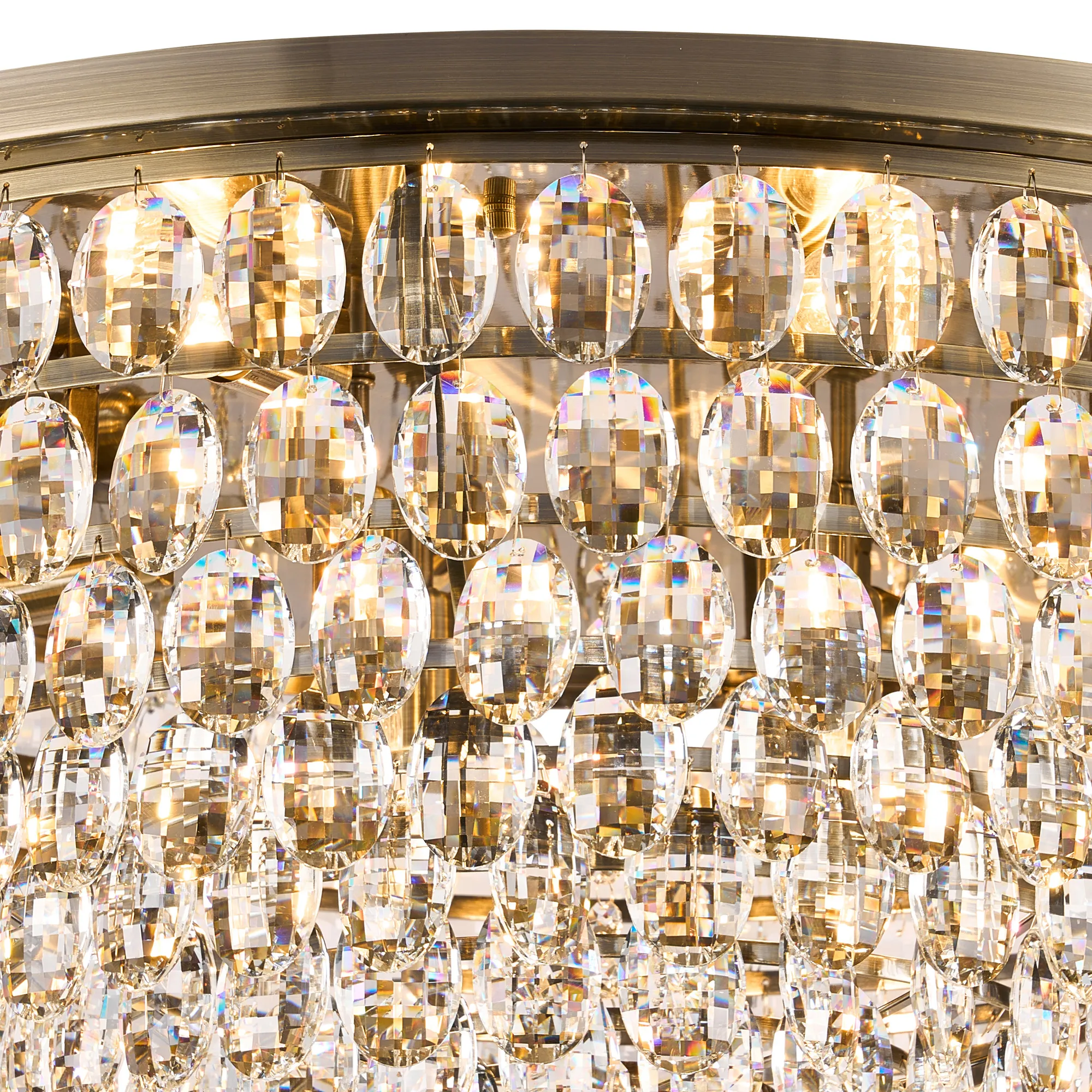 Lightologist Conifer 80cm Flush Ceiling, 12 Light E14, Antique Brass/Crystal