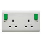Crabtree 13A 2 Gang Double Pole Outboard Switched Socket With Green Rocker