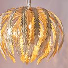An opulent and ornate gold leaf finished floral pendant light, formed from long floral leaves and suspended from height adjustable chain. Add some gold glamour to your interior, perfect when paired with LED filament lamps to create striking light patterns.