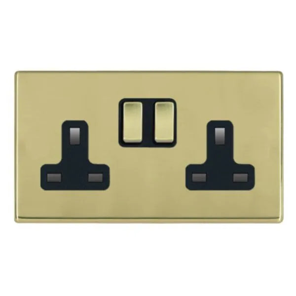 Hamilton 7G21SS2PB-B Hartland G2 Polished Brass 2 Gang 13A 2 Pole Switched Double Socket - Black Insert