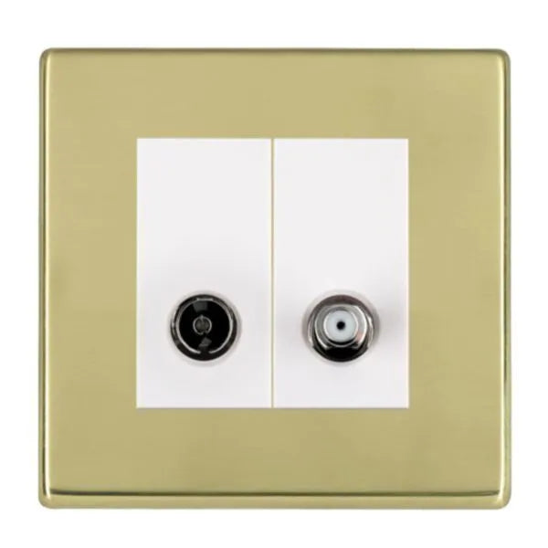 Hamilton 7G21TVSATW Hartland G2 Polished Brass 2 Gang Non-Isolated 2in/2out Coaxial TV and Satellite Outlet - White Insert