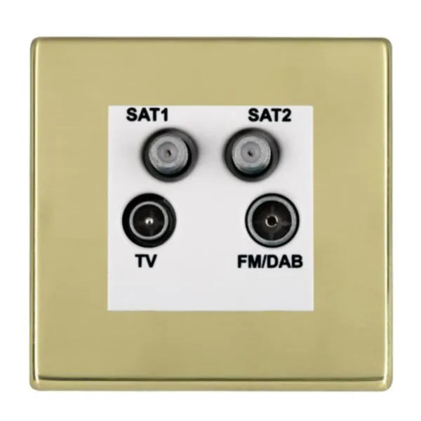 Hamilton 7G22DENTW Hartland G2 Satin Brass 1x Coaxial TV 1x DAB 2x SAT Non-Isolated 2in/4out Quadplexer - White Insert