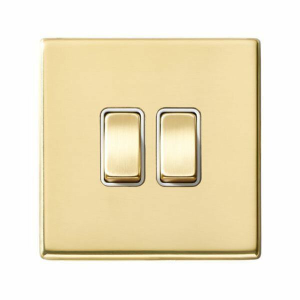 Hamilton 7G21R21R31PB-W Hartland G2 Polished Brass 2 Gang 10AX 1x 2 Way 1x Intermediate Plate Switch - White Insert