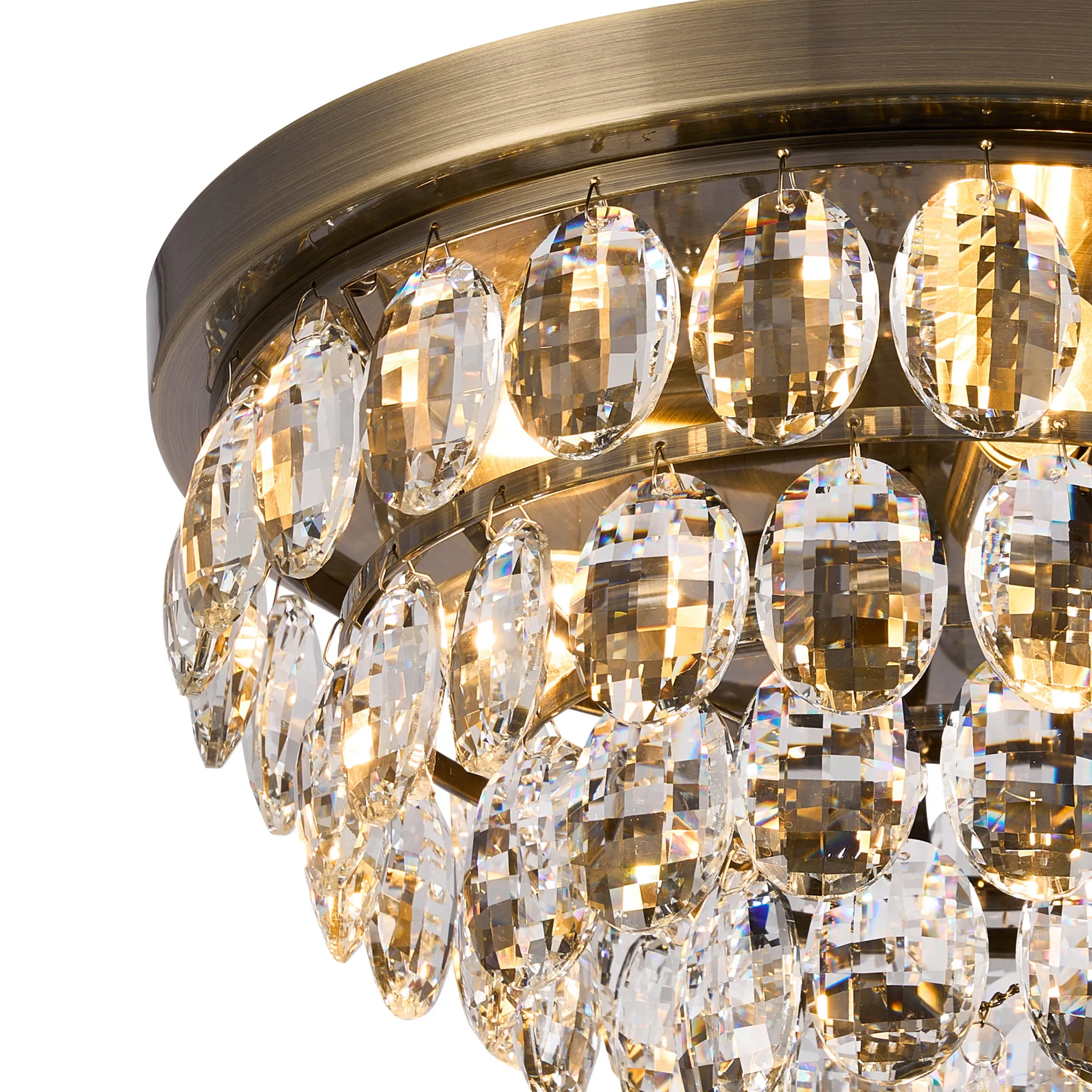 Lightologist Conifer 40cm Flush Ceiling, 3 Light E14, Antique Brass/Crystal