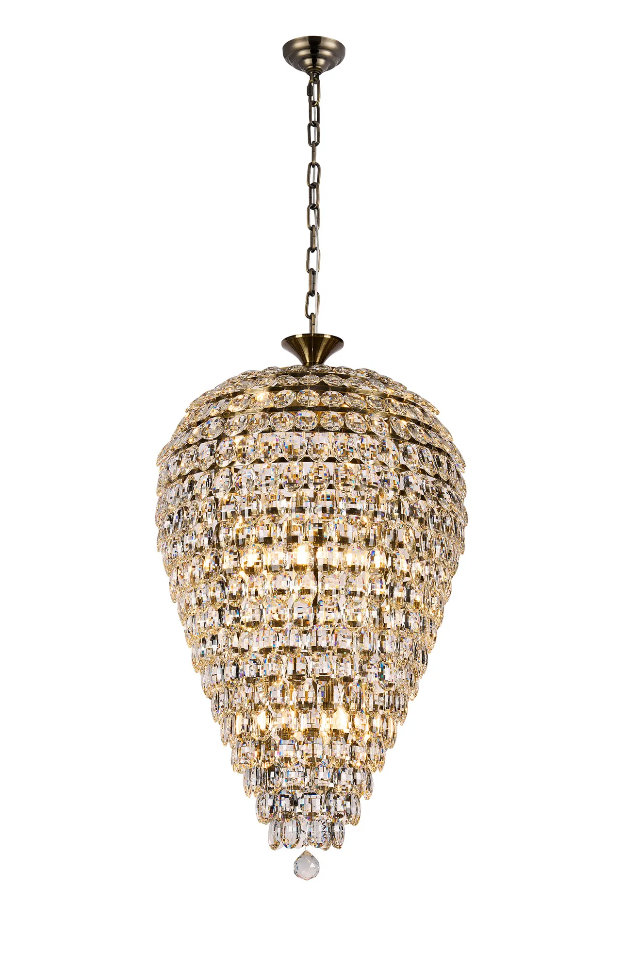 Lightologist Conifer 60cm Acorn Pendant, 16 Light E14, Antique Brass/Crystal