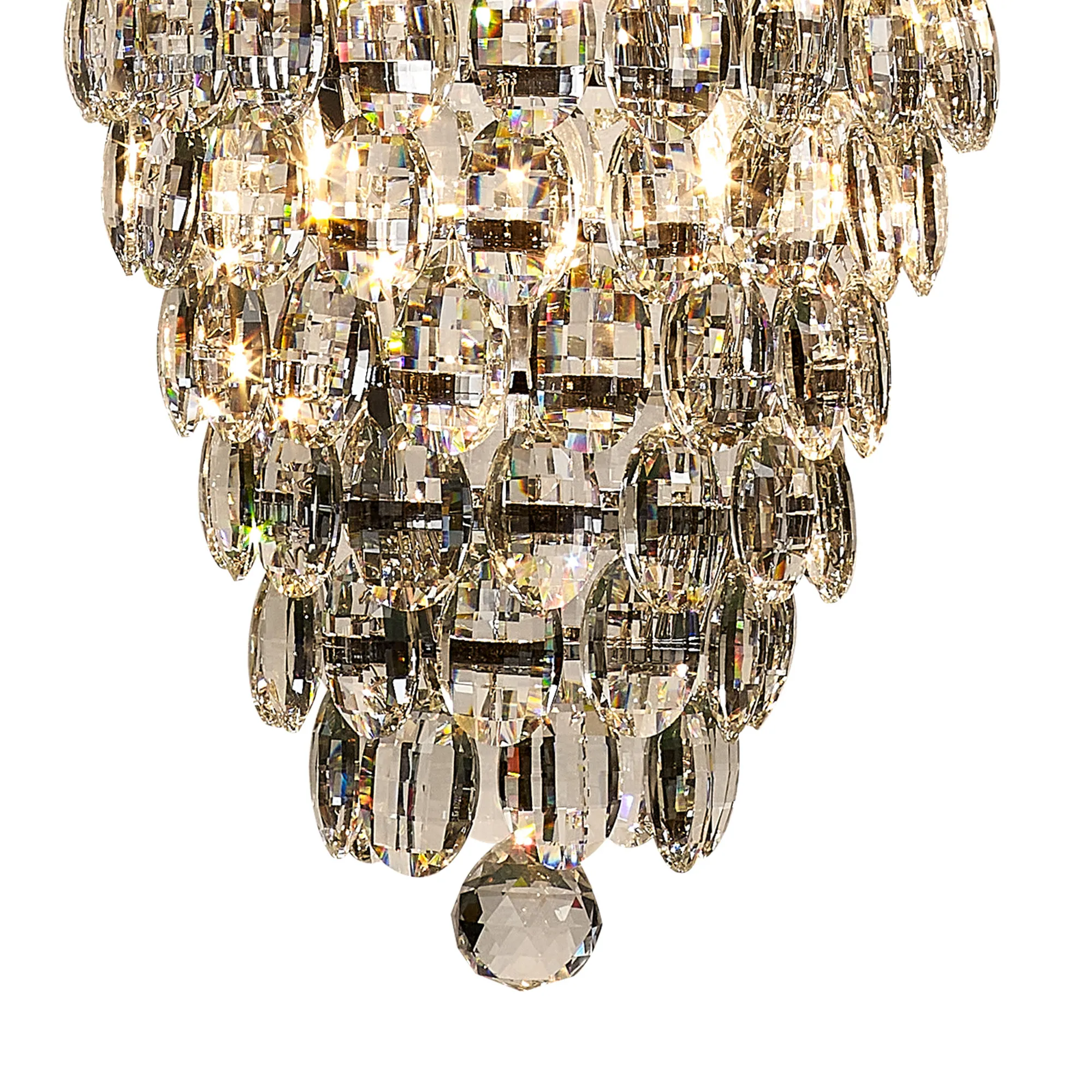 Lightologist Conifer 60cm Tall Acorn Pendant, 20 Light E14, Polished Chrome/Crystal Conifer is the epitome of a stunning crystal collection. Staying true to the high quality and distinctive designs provided by Lightologist lighting, this range hosts a substantial abundance of clear crystal pieces. Delicately displayed in a tiered cascading form to outline a striking feature. Available in three colour finishes with various sizes from a 1 light pendant to a 30 light acorn and complementing table, floor & wall lights, Conifer's engaging sophistication can be displayed within a wide variation of settings. QUICK SPEC