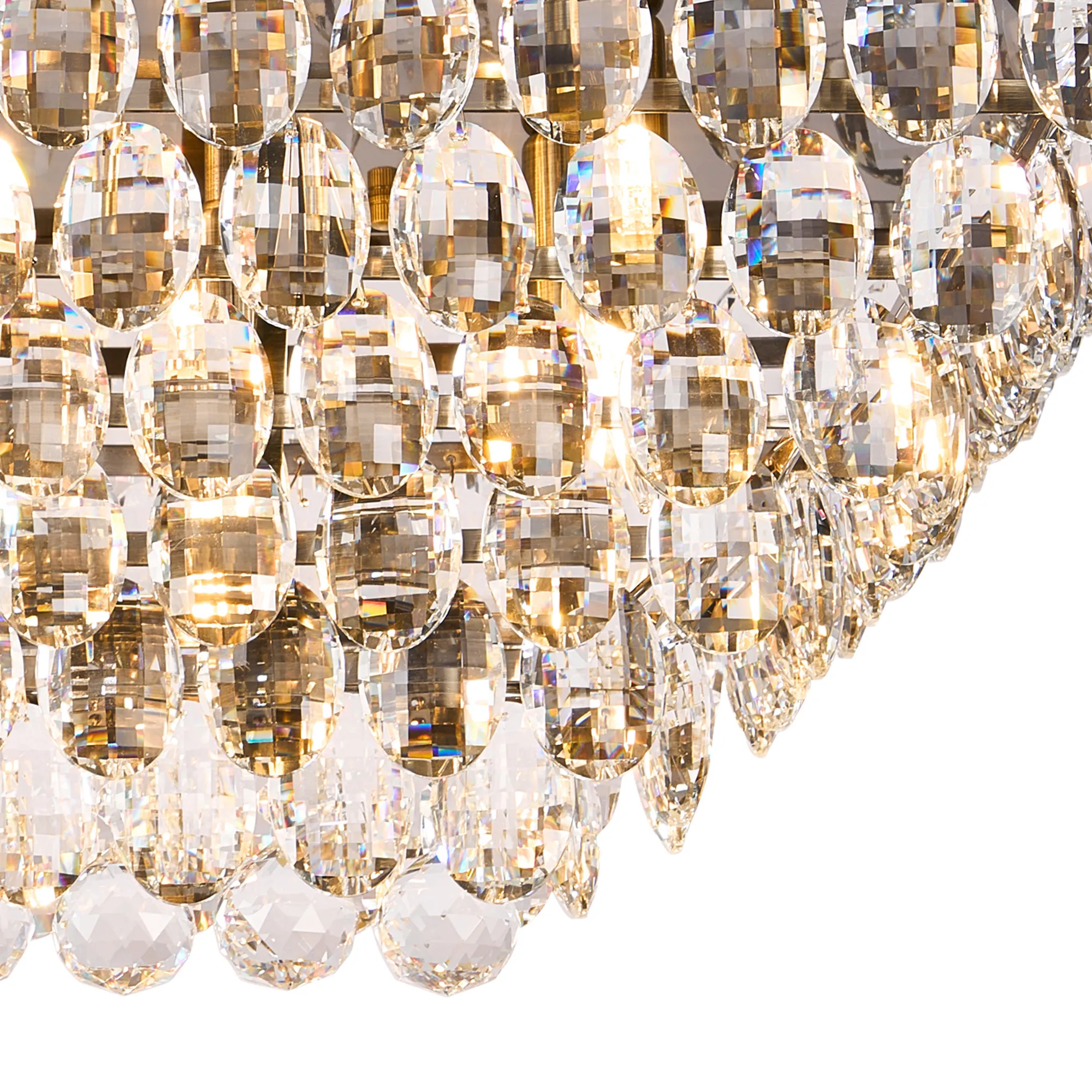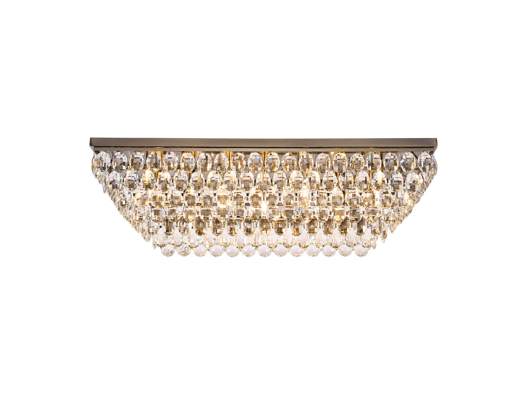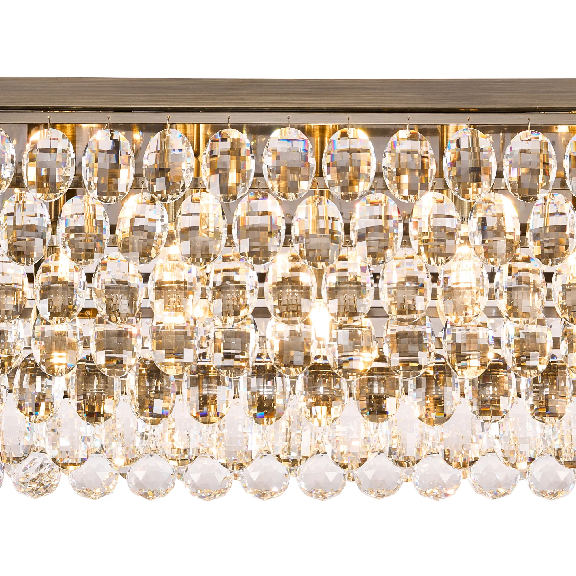 Lightologist Conifer Linear Flush Ceiling, 11 Light E14, Antique Brass/Crystal