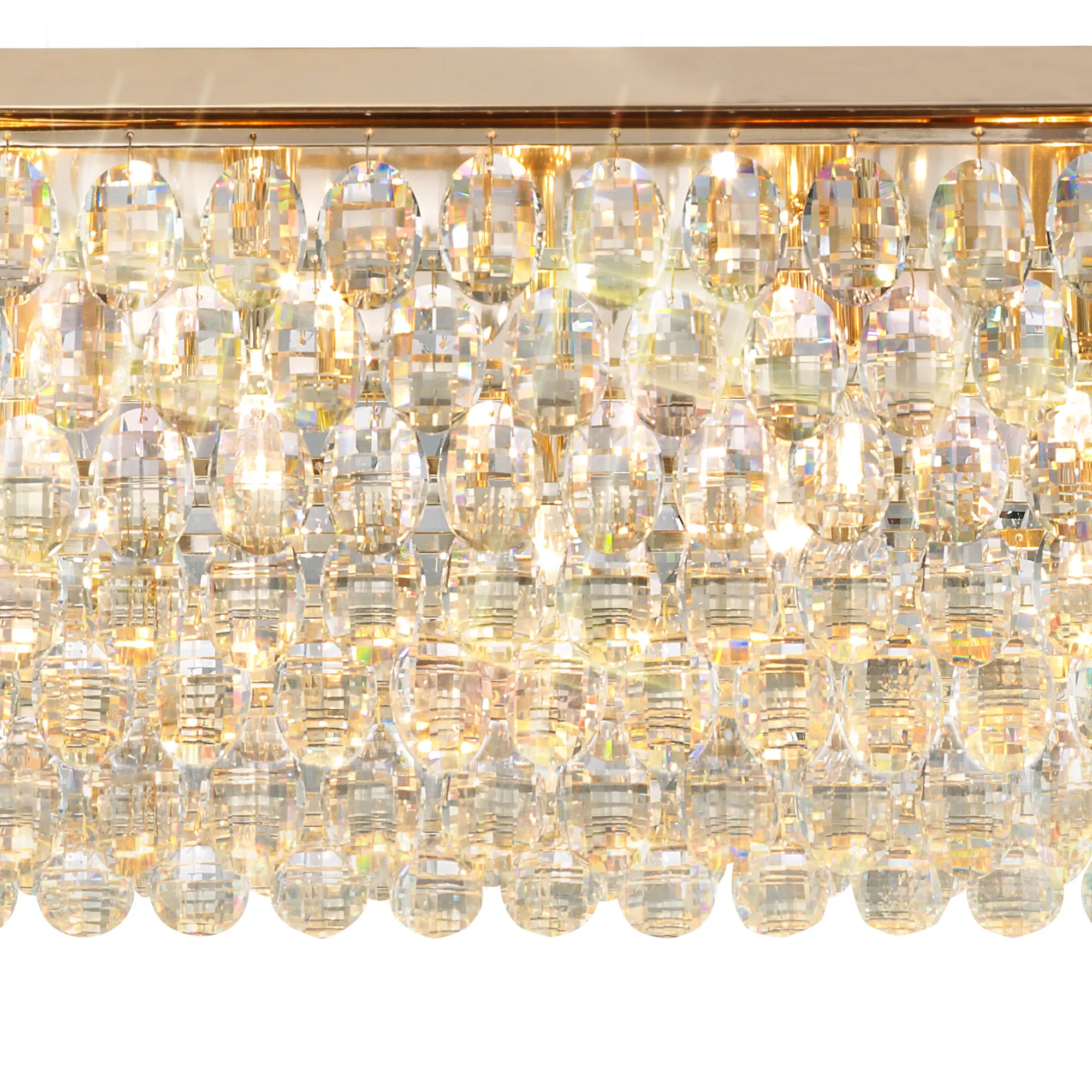 Lightologist Conifer Linear Flush Ceiling, 11 Light E14, French Gold/Crystal