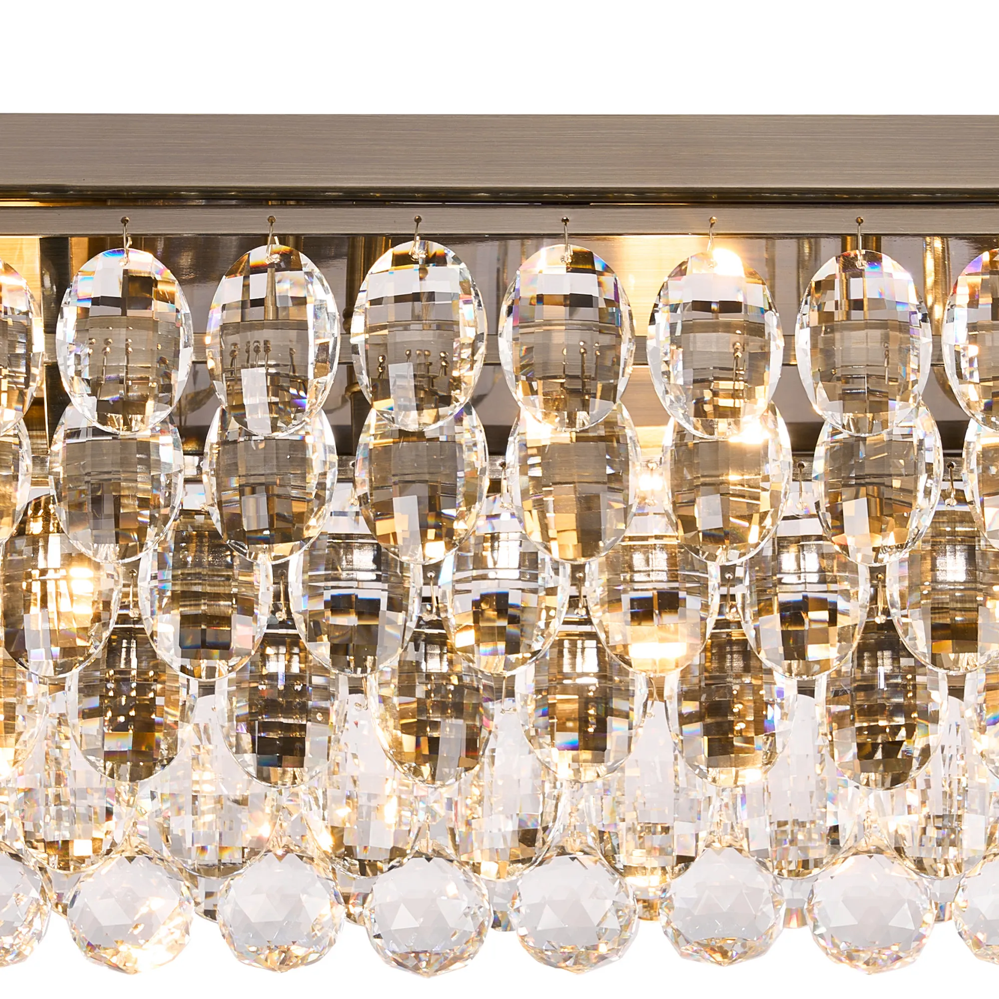 Lightologist Conifer Linear Flush Ceiling, 5 Light E14, Antique Brass/Crystal