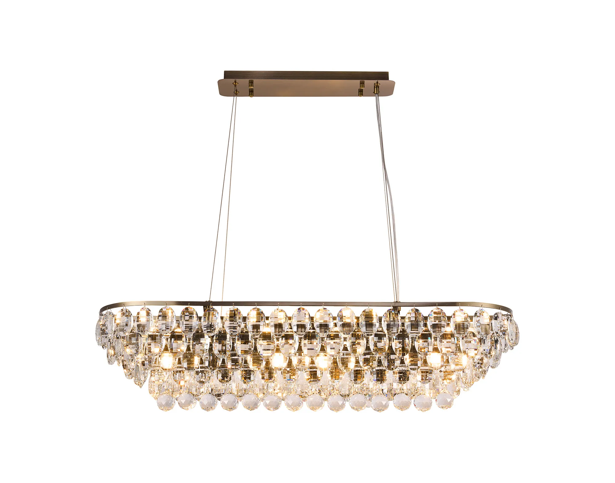 Lightologist Conifer Linear Pendant, 8 Light E14, Antique Brass/Crystal